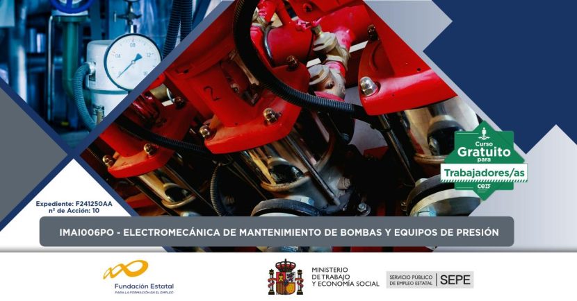 IMAI006PO ELECTROMECÁNICA DE MANTENIMIENTO DE BOMBAS Y EQUIPOS DE PRESIÓN Expediente: F241846AA nº de Acción: 10 Mantenimiento electromecánico en instalaciones de plantas y redes de agua. Curso gratuito destinado prioritariamente a personas ocupadas del sector metalFormación Presencial¡También para personas en búsqueda activa de empleo! Cupos limitados disponibles para personas desempleadas. ¿Qué ayudas existen para personas [...]