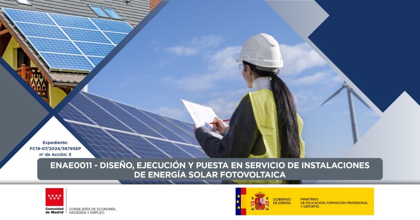 ENAE0011 DISEÑO, EJECUCIÓN Y PUESTA EN SERVICIO DE INSTALACIONES DE ENERGÍA SOLAR FOTOVOLTAICA Expediente: FC19-07/2024/5879SEP nº de Acción: 5 Con este curso gratuito aprenderás a diseñar instalaciones solares fotovoltaicas, su ejecución, puesta en servicio y mantenimiento, teniendo en cuenta sus diferentes tipologías, las características del emplazamiento, las necesidades energéticas y la normativa de aplicación. Reserva [...]